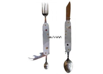 2 блок - вилка, чайная ложка, штопор, консервный нож;
