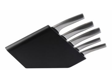 Нож для очистки 9 см - 1 шт Нож универсальный 12,5 см - 1шт Нож для хлеба 20 см - 1 шт Нож для мяса 20 см - 1шт Нож шеф-повара 20 см - 1 шт Подставка для ножей - 1 шт