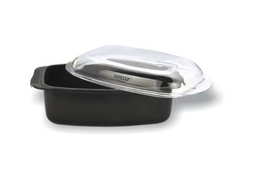 Жаровня с крышкой Материал корпуса - Алюминий Внутреннее покрытие - Трехслойное антипригарное покрытие Xylan QuanTanium Допускается применение металлических лопаток Внутренняя градуировка - нет Антидеформационный диск - нет Крышка - Из термостойкого стекла