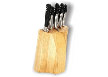Материал ручки ножа - Бакелит Цвет ручки - черный Цвет подставки - Светлое дерево Ножей в комплекте - 4