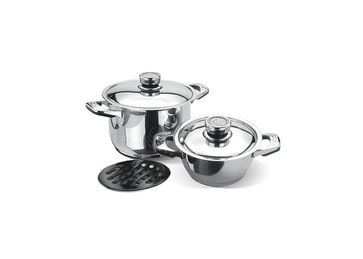 Набор посуды из 5 предметов (Royale) Комплектация: 20 см Кастрюля с крышкой - 3,9 л 18 см Кастрюля с крышкой - 2,65 л Бакелитовая подставка - 1 шт