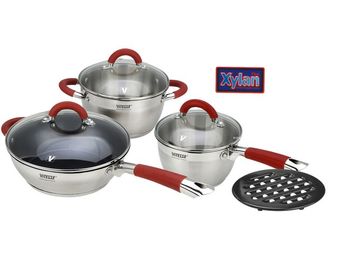 Материал корпуса - Нержавеющая сталь Полировка - Зеркальная Внутреннее покрытие - Антипригарное покрытие XYLAN Plus Антипригарное покрытие сковороды - есть Дно - Многослойное термоаккумулирующее Крышки - Из термостойкого стекла Ручки - Из нержавеющей стали с силиконовым покрытием Способ крепления ручек - На клепках Бренд - ViTESSE