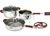 Набор посуды из 7 предметов Комплектация: 20 см Кастрюля с крышкой - 3,1 л 16 см Сотейник с крышкой - 1,6 л Сковорода - 24 см / 2,9 л Бакелитовая подставка - 1 шт