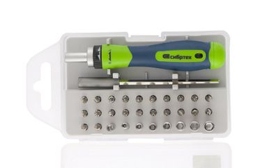 - Отвертка реверсивная для точных работ с набором бит и торцевых головок, удлинитель, 32 предметов, CrV Сибртех по выгодной цене 369 р. руб.;