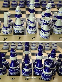 Закажите Шахматы с росписью Сине-белые, Вятские у компании Тульские самовары в Санкт-Петербурге на портале Alloy: