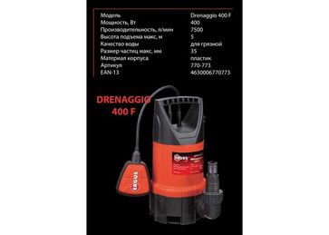 - Дренажный насос ERGUS Drenaggio 400 F (400Вт, высота до 5 м, до 7500 л час, грязная вода) по выгодной цене 1 250 р. руб.;