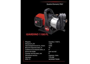 - Садовый насос ERGUS Giardino 1100 FL Inox (1100Вт, высота до 45 м, до 4200 л час) в каталоге Насосы центробежные в Санкт-Петербурге;