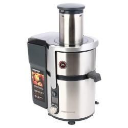 ----Стильная универсальная соковыжималка в металлическом корпусе для приготовления сока из мягких и твердых продуктов с широким загрузочным отверстием, для загрузки фруктов и овощей без предварительного измельчения- None