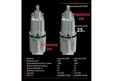 - Вибрационный насос ERGUS Acquatico 200 (200 Вт, высота до 70 м, 1000 л час, провод 25 м) по выгодной цене 1 400 р. руб.;