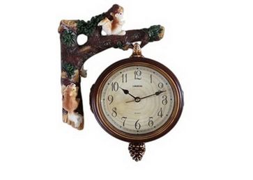 Часы настенные двусторонние на кронштейне Арабские и римские циферблаты Украшены фигурками зверей.