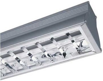 Подвесной люминесцентный двухламповый светильник 2х35Вт электронная ПРА, металлическая антиблковая решётка две лампы Т5 в комплект не входят цвет металлик Габариты: 1484х142х111мм предоплата