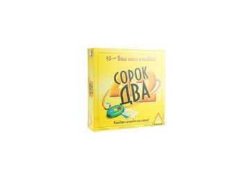 Серия Сорок два Русское наименование "Сорок два" (778094) Тип игры самостоятельная игра Возраст 12 Быстрая и увлекательная игра на сообразительность поможет Вам провести весело вечеринку, день рождения или любой семейный праздник! Вам предстоит называть слова из самых разных областей нашей жизни на скорость, чтобы набрать необходимую сумму очков - 42! Сможете ли Вы вспомнить 6 созвездий, 10 европейских рек, 10 героев мультфильмов, 7 личностей, известных под псевдонимами? Кидайте кубик и определяйте, сколько времени у Вас есть на это - 30, 45 или 60 секунд!Вам не хватает знаний? Спросите другого игрока! Помогать - можно, но не бесплатно! Вы имеете право купить ответы, которых Вам не хватает, у других игроков за определенное количество очков.Рисковать или играть осторожно, поддаться искушению или действовать наверняка? Выбор за вами! Легкие вопросы приносят существенно меньше очков! Вперед. время не ждет!В набор входят:- 165 карточек с вопросами,- 1 игровое поле,- 1 электронный таймер,- 1 цветной кубик,- 6 фишек.Эта игра гарантирует Вам заряд бодрости и веселья!Предназначена для 3-6 игроков, начиная с 12 лет и до бесконечности! Принимаем WebMoney, QIWI и Yandex-деньги без %