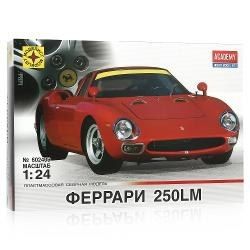 ---Описaние-Этот автомобиль стал первым серийным гоночным Ferrari с двигателем в пределах колесной базы. Силовой агрегат обеспечивал "Феррари 250LM" разгон с места до 161 км/ч примерно за 12 с. и позволял развивать максимальную скорость 286 км/ч.Хоть "250LM" и считалась дорожной машиной, фактически ее строили для участия в гонках. Подтверждением тому победы в десяти важнейших американских и европейских чемпионатах в 1964 г. Звездный час автомобиля "250LM" - 24-часовые гонки в Ле-Мане 1965 г. Эта победа стала сюрпризом, ведь после первых 8-часов машина занимала всего лишь 14-е место. Но уже через три часа ее экипаж переместился на третью, а вскоре и на вторую позицию. С 21-го часа и до самого финиша машина лидировала, показав в итоге среднюю скорость 194,923 км/ч. Всего в 1963-66 гг. было построено 32 автомобиля "250LM".-Основные характеристики--Вид модели-Авто/Мото транспорт-Тип-Автомобиль-Масштаб модели-1:24-Исторический период-Современные-Уровень сложности-Средние (от 30-ти до 150-ти деталей)-Пол-Для мальчиков-Возраст от-От 7 лет-Основной цвет-Красный-Упаковка--Размер упаковки (ВхШхД), см-34.5 x 24 x 6.2 см, вес 0.26 кг-Информация о производителе--Производитель-ООО "МОДЕЛИСТ"-Страна производства-РОССИЯ- None