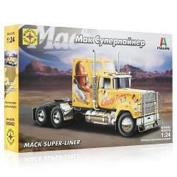 ---Описaние-Мак Суперлайнер, США, 1977 год.В 1977 году Американская автомобилестроительная компания «MACK» выпускает на рынок свой самый престижный капотный магистральный седельный тягач «Суперлайнер». Характерными внешними особенностями новой машины стали угловатая кабина и огромная хромированная решетка радиатора, за которой мог размещаться дизельный двигатель мощностью от 175 до 550 л.с. с полуавтоматической шестиступенчатой коробкой передач. Также «Суперлайнеры» отличаются характерными воздухозаборниками - их раструбы высоко подняты и оснащены специальными фильтрами, которые задерживают вездесущий песок.Предмет особой гордости конструкторов - спальный отсек Millennium, этакая "комната" высотой 224 сантиметра. В ней есть масса багажных полок, специальное место для телевизора и холодильника, гардероб. А еще здесь стоит пружинная кровать метровой ширины!Суперлайнер произвел настоящий бум среди дальнобойщиков, восхищая ценителей грузовиков своими габаритами! Благодаря брутальному дизайну, «Суперлайнер» не оставил равнодушными голливудских режиссеров и снялся во многих фильмах, таких как: «Розовый кадиллак», «Крокодил Данди», «Рыцарь дня», «Неуправляемый», «Последний день» и других. Кроме того этот могучий тягач появлялся и в мультипликационных фильмах, например в «Тачках».Помимо США, «Суперлайнер» производятся и в Австралии. Там марка «MACK» находится на втором месте по популярности и в 2013 году получила титул "грузовик года".Несмотря на то, что это модель уже прошлого века, огромное количество фанатов по-прежнему считают «Суперлайнер» самой лучшей машиной в своем классе. Кроме того, существует выражение «built like a Mack» - "построен как Mack", т.е. на долгие годы. А это о чем-нибудь да значит!-Основные характеристики--Вид модели-Авто/Мото транспорт-Тип-Грузовик-Масштаб модели-1:24-Исторический период-Современные-Уровень сложности-Сложные (от 150-ти деталей)-Пол-Для мальчиков-Возраст от-От 7 лет-Основной цвет-Желтый-Упаковка--Размер