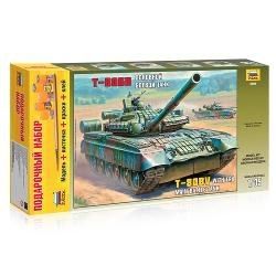ПОДАРОЧНЫЙ НАБОР Сборная модель Основной боевой танк Т-80БВ, 1:35 + клей краски кисточка (3592П)