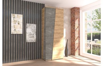 Шкаф с ассиметричными створками привлекает своим оригинальным внешним видом, приятными на ощупь поверхностями и, конечно, самой идеей использовать нечто нестандартное.