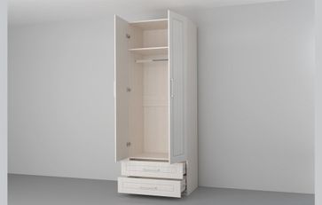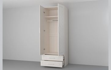Шкаф двухстворчатый с ящиками довольно хорошо впишется в любой современный интерьер. Его преимущества: хорошая вместимость, компактность, универсальность. За распашными дверями находятся: антресольная полка и металлическая штанга для одежды. Внимание!!! Фрезеровка на фасаде может быть двух видов: «Прованс», «Ромб». None Страна производства: Россия Есть доставка.