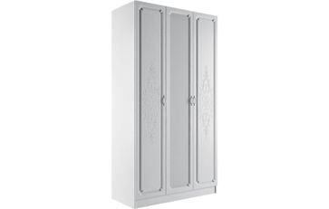 Магнолия Шкаф 3-х створчатый — модель с 3 распашными дверьми. Материал корпуса ЛДСП, фасада двух дверей — МДФ с глубокой фрезеровкой и тонким рисунком, одна дверь укомплектована зеркальной вставкой.Наполнение шкафа:•секция со штангой и антресольной полкой,•секция с 4 полками. None Страна производства: Россия Есть доставка.