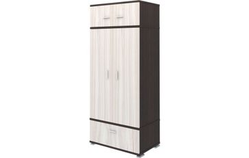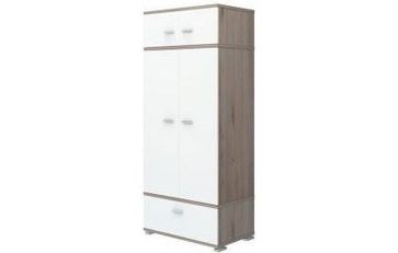 Классический двухстворчатый шкаф для одежды. За левой дверцей располагается отсек со штангой для вешалок, за правой -полки для одежды. Внизу находится выдвижной ящик, на верху за 2-мя распашными дверцами находится ниша для хранения. Размер: 900Ш х 571Г х 2130В None