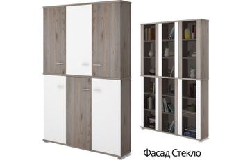 Вместительный стеллаж Прекрасно подходит для зонирования помещений Возможен индивидуальный заказ на большее кол-во секций. Место расположения ручек на глухих фасадах может меняться по желанию покупателя. Фасад из ДСП можно заменить на стеклянный фасад. Пример стеллажа со стеклянным фасадом смотрите в разделе ”В интерьере”. Размер: 1340Ш х 300Г х 2131В None