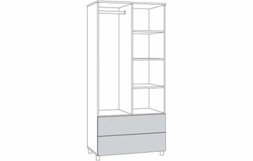 Внутри секция с 4-я полками для белья и отделение с горизонтальной штангой для плечиков с одеждой.