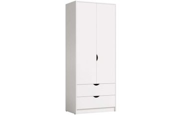 Двухдверный шкаф из серии Уна с удобными выдвижными ящиками для хранения. Цвет универсальный и подойдет для любой комнаты. Ручки на фасаде шкафа вырезаны. Все ящики имеют внутреннюю перегородку, что позволяет еще лучше организовать хранение вещей. Шкаф выполнен из ЛДСП 16 мм, кромка 1 мм. Цвет изделия белый структура "поры дерева". None Страна производства: Россия Есть доставка.