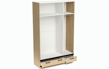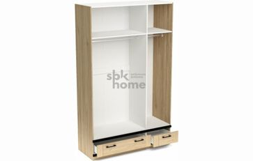 Внутри шкафа ящики, полка и штанга для вешалки. Необходимо дополнительно укомплектовать: