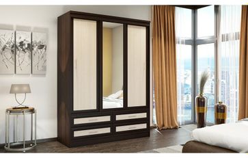 Шкаф-купе Мечта является классической моделью шкафа. Модель великолепно впишется в интерьер любой квартиры. Изготовлен из качественного ЛДСП толщиной 16 мм, фасад: штапик. Цвет: Венге / Дуб млечный. Возможные варианты декора (корпус / фасад):