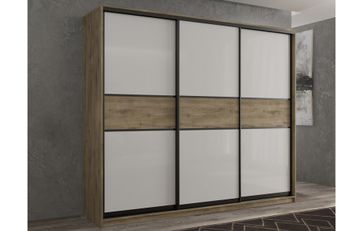 Характеристики: Дверь 1: Стекло Lacobel Белый матовый/ЛДСП Дверь 2: Стекло Lacobel Белый матовый/ЛДСП Дверь 3: Стекло Lacobel Белый матовый/ЛДСП Наполнение: 8 полок, 2 штанги (глубина 45 см - штанги выкатные). None Страна производства: Россия Есть доставка.