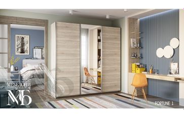 Шкаф-купе Фортуна - отличный выход для хранения всего, что только хочется! В нем одежда и обувь складируются с одной стороны, а книги и прочие предметы с другой стороны. такой гардероб позволяет спрятать не только вещи, но и визуально увеличить пространство за счет зеркальных фасадов.