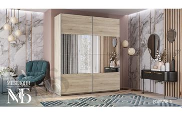 Шкаф-купе Фортуна - отличный выход для хранения всего, что только хочется! В нем одежда и обувь складируются с одной стороны, а книги и прочие предметы с другой стороны. такой гардероб позволяет спрятать не только вещи, но и визуально увеличить пространство за счет зеркальных фасадов.