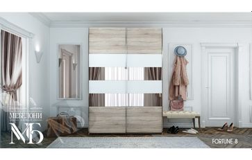 Шкаф-купе Фортуна - отличный выход для хранения всего, что только хочется! В нем одежда и обувь складируются с одной стороны, а книги и прочие предметы с другой стороны. такой гардероб позволяет спрятать не только вещи, но и визуально увеличить пространство за счет зеркальных фасадов.