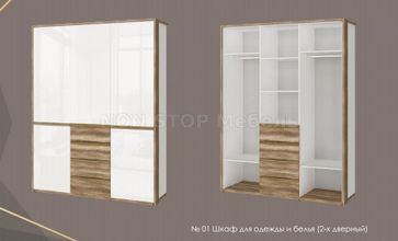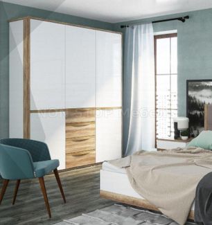 Шкаф для одежды и белья трехдверный c ящиками №1 Николь Цвет дуб каньон / белый / белый снег Размер 1706х556х2208h Можно дополнить элементами спальни Николь None