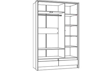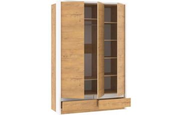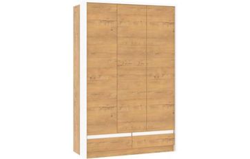 Шкаф оснащен тремя глухими распашными дверцами, за которыми находятся 7 полок и штанга для плечиков с одеждой. Внизу дополнительно два объемных выдвижных ящика для хранения мелких сопутствующих предметов. None Есть доставка.