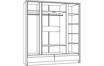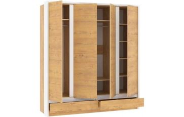 Шкаф оснащен четырьмя глухими распашными дверцами, за которыми находятся 3 секции. Отделение с 5 полками и 2 ниши с 3-я полками и 2-я штангами для плечиков с одеждой. Внизу дополнительно два объемных выдвижных ящика для хранения мелких сопутствующих предметов. None Есть доставка.