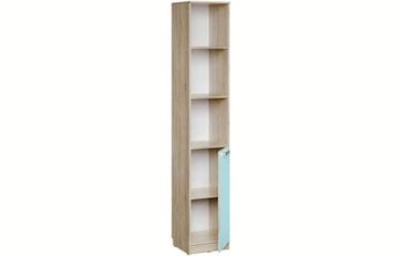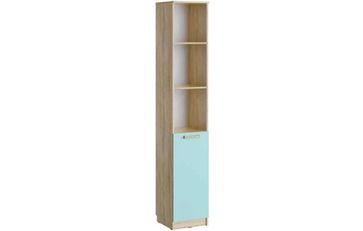 Три верхние полки открытые. Две нижние закрываются глухой распашной дверцей. Стеллаж выполнен в комбинированном цвете, смотрится стильно и ярко. Он отлично подходит для хранения детских вещей. None Есть доставка.