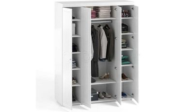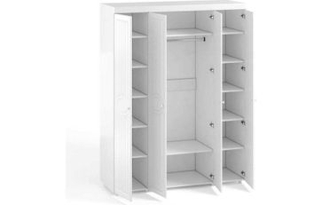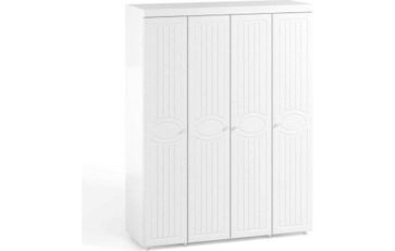 Шкаф 4-х дверный Монако МН-59 белое дерево - вместительная система хранения для спальни или прихожей. Модель оснащается 4-я глухими распашными дверцами. Внутри в центре две полки и горизонтальная штанга для плечиков с одеждой, слева и справа секции с полками. None Есть доставка.
