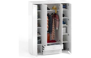 Шкаф 4-х дверный с ящиками Италия ИТ-62 белое дерево - вместительная, комбинированная система хранения для спальни или прихожей. Модель оснащается 4-я глухими распашными дверцами. Внутри в центре полка и горизонтальная штанга для плечиков с одеждой, внизу 2-а широких выдвижных ящика, слева и справа секции с полками. None Есть доставка.
