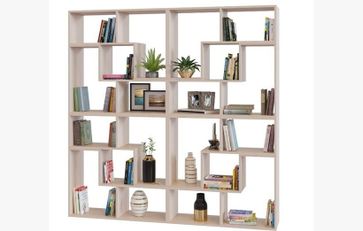 Высокий открытый стеллаж идеален для создания библиотеки в гостиной, в молодежной комнате или в домашнем кабинете. Большое количество полок разных размеров позволяют расставить разнокалиберные книги с удобным к ним доступом. Все корешки будут видны и вы сразу сможете найти нужное издание.