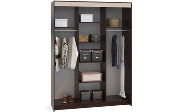 Для размещения вещей в шкафу предусмотрены два отсека со штангами по бокам и отделение с четырьмя полками по центру. Большое внутреннее пространство подойдет для хранения габаритных предметов, например, коробок с обувью или чемодана.