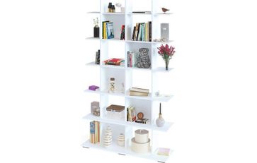 Наполнение стеллажа состоит из множества открытых полочек. На них можно с удобством разместить книги, журналы, косметические средства и различные предметы декора.