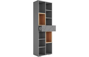 Внутреннее пространство визуально поделено на верхнюю и нижнюю секции при помощи ящикапосередине стеллажа.
