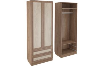Корпус шкафа выполнен из Ламинированной ДСП высокого качества с насыщенным цветом. Фасады выполнены из материала МДФ.Шириною 80 см., эта многофункциональная модель несет в себе следующие элементы. За распашными дверьми находится штанга для одежды. Внизу расположены два выдвижных ящика. None Есть доставка.