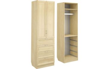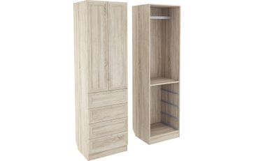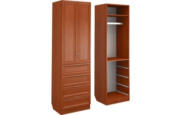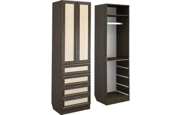 Корпус шкафа выполнен из Ламинированной ДСП высокого качества с насыщенным цветом. Фасады выполнены из материала МДФ.Шириною 60 см., эта многофункциональная модель несет в себе следующие элементы. За распашными дверьми штанга для одежды, вверху ниша. Снизу четыре выдвижных ящика. None Есть доставка.