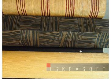 Такие обои производят путем наклеивания на неотбеленную бумагу или флизелин нитей из волокон бамбука, джута, маранты, китайской крапивы, желтого тростника, шпона пробкового и красного дерева, листьев дерева "Будды" и магнолии, нитей папируса и многих других растений из разных уголков земного шара. Натуральные обои - это гарантия хорошего воздухообмена и высокой звукоизоляции в квартире. С их помощью можно создать неповторимый и комфортный интерьер, а также подчеркнуть индивидуальность вашего дома. В магазинах "Искрасофт" на ваш выбор следующие серии обоев COSCA decolingi: Comfort, Standart, Premium, Luxury - ширина 91 см, Exclusive - 97 см. Длина одного рулона - 5, 5 и 10 метров, по цене от 200 руб. за рулон. Кроме того, в ассортименте салонов "Искрасофт" - обои Sirpi, Rasch-Textile, Casadeco, Zambaiti.