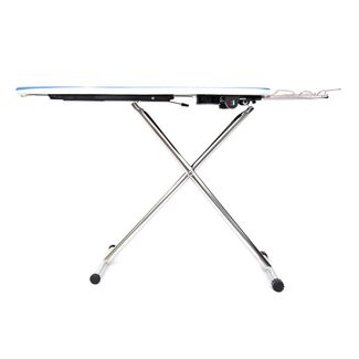 Гладильная доска EOLO AT-07 с вакуумом и нагревом рабочей поверхности. Имеет большую гладильную поверхность 120х45 мм, встроенная розетка для подключения парогенератора, термореле. Нет полки для белья, имеет колесико для комфортного перемещения доски в сложенном виде.  Необходима предоплата 50%. Есть доставка.
