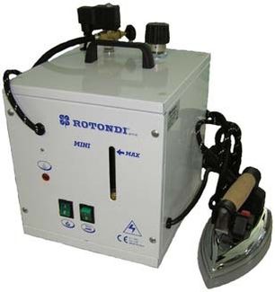 Rotondi Mini-4 профессиональный парогенератор подойдет для небольших ателье, гостиниц, ресторанов, а также для использования в домашних условиях. Утюг профессиональный с пробковой ручкой. Вес утюга 1,5кг.  Аппарат можно использовать 20 часов в день или 80 часов в неделю. Необходима предоплата 50%. Есть доставка.