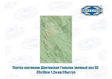 Закажите Плитка настенная Шахтинская Гималаи зеленый низ 02 20х30см 1,2м.кв 20шт уп у компании Материк в Санкт-Петербурге, Красногвардейском р-н на портале Alloy: