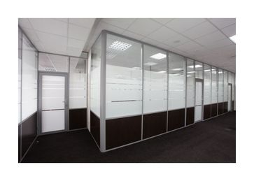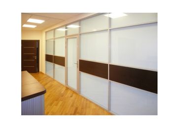Компания-производитель предлагаеткомбинированные стационарные перегородкидля офиса. Комбинированные перегородкиизготавливаются из глухого и прозрачного материала. Заполнение прозрачной части: стекло сырое /закаленное, триплекс, оргстекло, поликарбонат. Заполнение глухой части: ЛДСП, гипсовинил, гипрок.