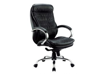Механизм качания с регулировкой под вес и фиксацией в нескольких положениях регулировка высоты (газлифт) Металлические хромированные подлокотники с мягкими кожаными накладками Металлическая хромированная крестовина